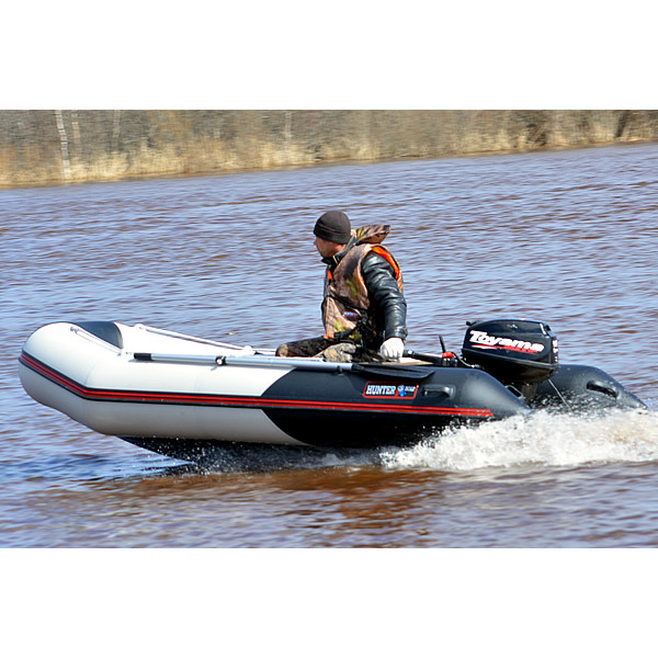 Рекомендуем купить Хантер 340. Это новинка сезона 2014. Килевая лодка Hunter 340 рассчитана на трех пассажиров, способна ходить под мотором до 15 л.с. Транец усилен. В комплект входит инновационный пол из 9-милиметровой водостойкой фанеры. Его секции скреплены алюминиевым профилем с соединением «мама-папа». Надувная лодка ПВХ Хантер 340 изготовлена из немецкой ткани «HeyTex» плотностью 850 г/м2.